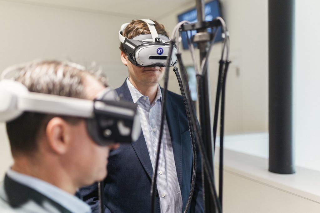 Bild links: Conrad Clemens und Jörg Schmidt testen die VR-Station zur geglückten Ballonflucht im Obergeschoss des Deutsch-Deutschen Museums.